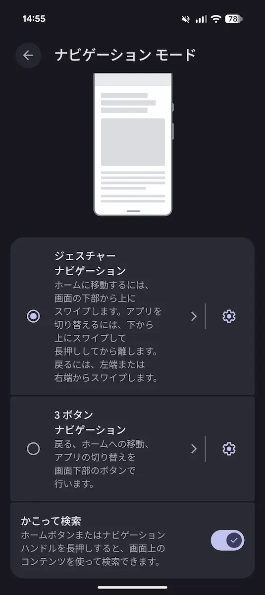 設定メニューの [システム] > [ナビゲーションモード] から、3 ボタンナビゲーションの歯車アイコンをタップすることで「ボタンの順序」を変更できます。