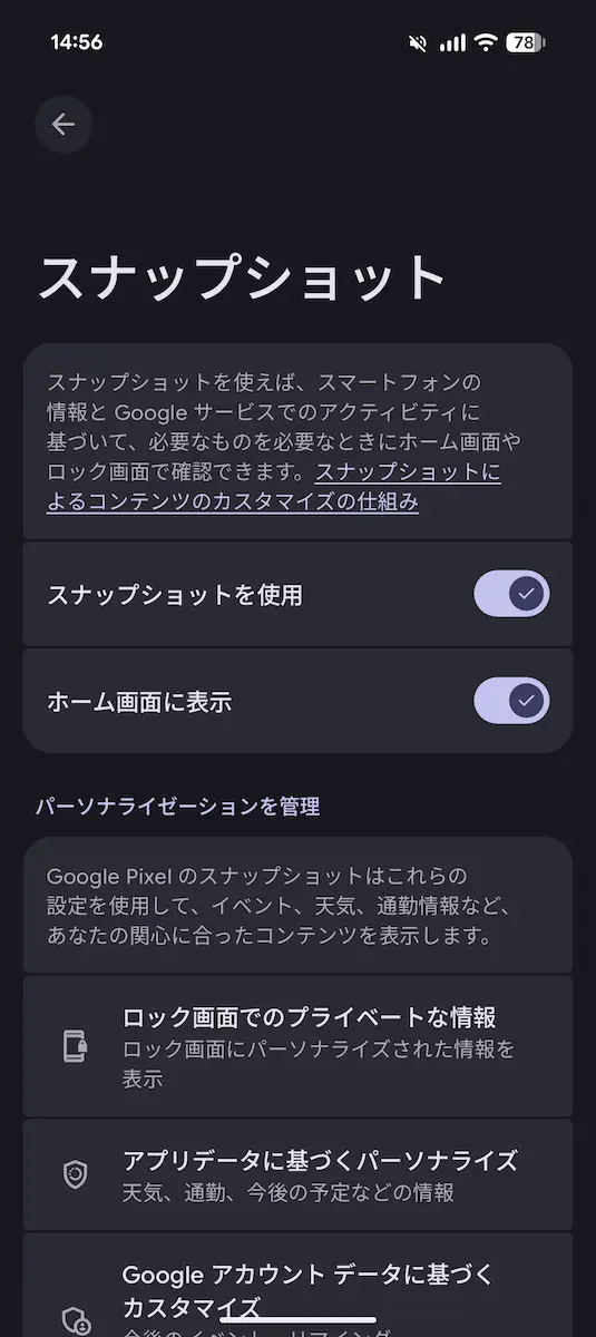 ロック画面では日付と天気の表示位置が左右反転しているほか、ホーム画面からスナップショットを完全に削除するオプションも追加されました。