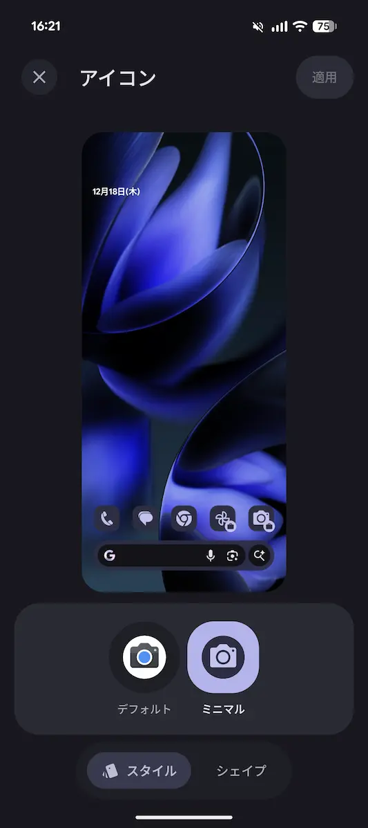 さらに、従来はトグルの項目名だった壁紙とスタイルにおける「テーマアイコン」という名称が、「ミニマル」に変更されました。