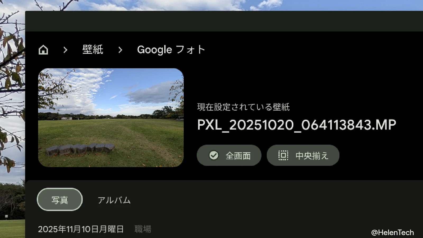 このとき、全写真の一覧だけでなくアルバム単位でも選べますが、検索機能やソート機能はないため、壁紙にしたい写真は事前にアルバムにまとめておくと便利です。
