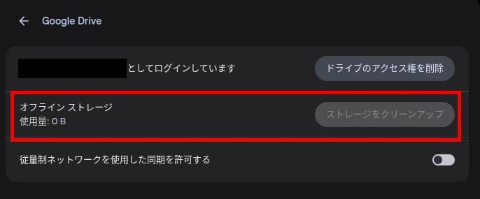 - または、[設定] アプリ > [システム環境設定] > [Google Drive] にある [ストレージをクリーンアップ] して、一括でオフラインファイルを削除することもできます。