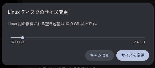 Chromebook で Linux を利用している場合、仮想ディスクのサイズが増えることがあります。