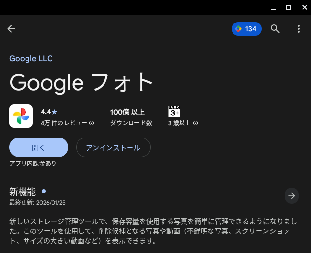 3. 「Google フォト」 を検索し、[インストール] します