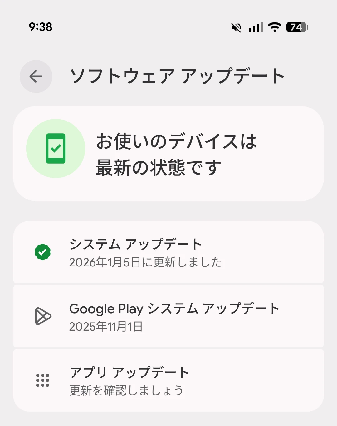 一部のユーザーで Google Play システム アップデートの日付が古く表示される問題を認識しています。これは表示のみの問題です。デバイスのパフォーマンスやセキュリティには影響しません。