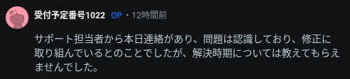 現時点では公式回答はないが、修正に取り組んでいるとされる