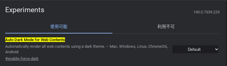 - フラグ chrome://flags から「Auto Dark Mode for Web Contents」を「Disabled(無効)」に設定する