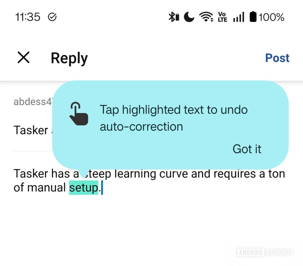 Android Authority によれば、今回の新機能によって、Gboard が自動修正を行った箇所がハイライトで表示され、どの単語が変更されたかをすぐに確認できるようになりました。