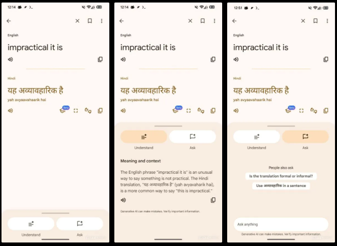 また、Google は翻訳結果に関連する AI 機能のテストも同時に進めています。