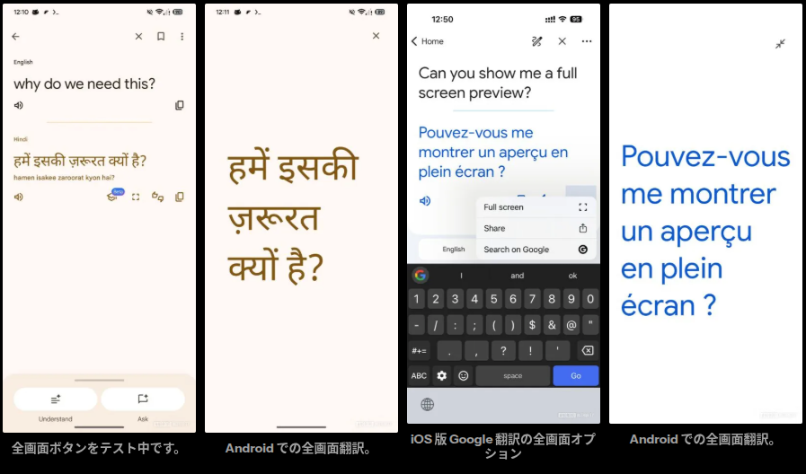 この機能は、現地の人に翻訳内容を見せたり、スクリーンショットで共有したりする際に特に役立つとみられます。遠くからでも読みやすく、視覚に不自由のあるユーザーにとっても利便性が高い設計です。