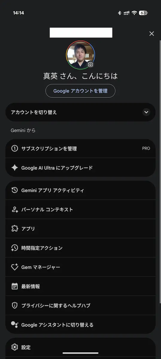 Android と iOS の両方で、Google アカウントのメニュー画面が全画面表示の新デザインに変更されました。これにより、設定項目へのアクセス方法が一部変更されています。