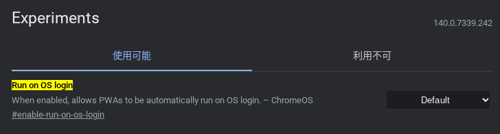 この PWA 自動起動機能は、以前は chrome://flags から #enable-run-on-os-login というフラグを有効にすることで利用できるものでした。