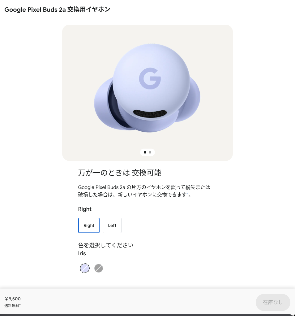 - Pixel Buds 2a 交換用イヤホン (左/右別売): 9,500 円