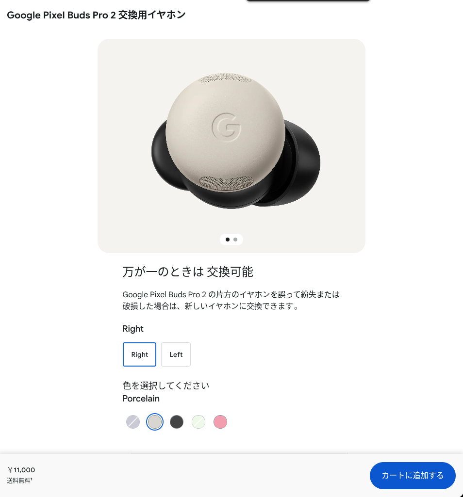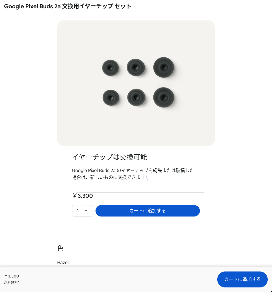 しかし現在は、Google ストアの商品ページから、交換用イヤホン(左または右)やイヤーチップを選んで購入できます。