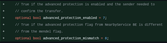 Android Authority の Mishaal Rahman 氏によると、Google は Quick Share の通信基盤である「Nearby」ライブラリに、advanced_protection_enabled という新しいフラグを追加しました。このフラグが有効な場合、ファイル転送時に送信者側で確認操作が求められるようになります。