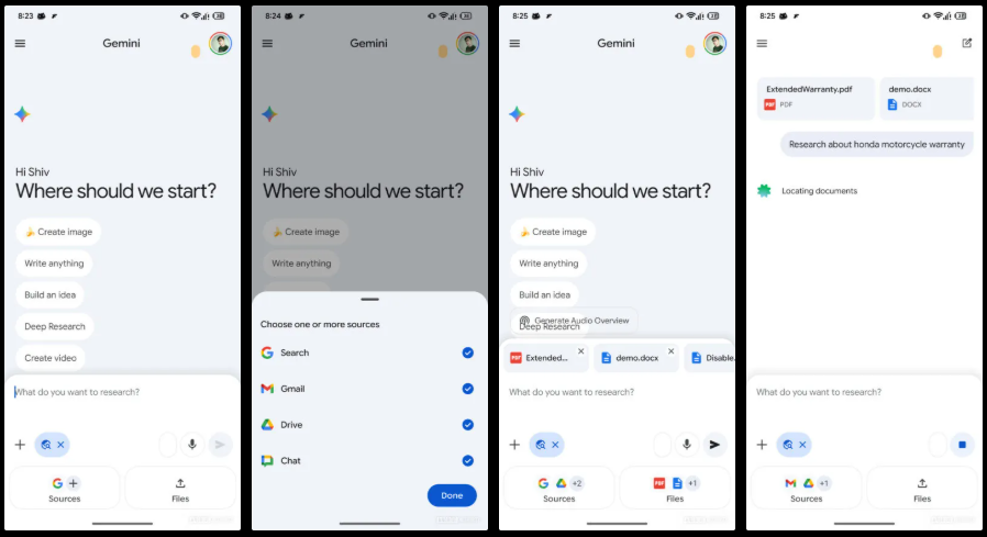 これまでは個別にアップロードしたファイルや画像を中心に分析していましたが、今回の発見によると、Gmail、Google ドライブ、Google チャット、Web 検索などのソースを個別に指定できるようになるとみられます。