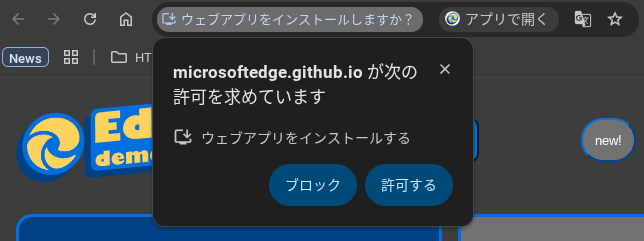 Microsoft Edge チームが公開しているデモページWeb Install API デモサイトで動作を確認可能です。