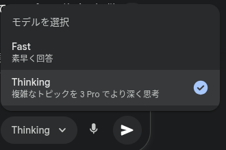 Workspace ユーザー向けの Gemini 3 Pro は、従来の「Pro」に相当する「思考(Thinking)」モードで利用可能になっており、特に情報整理・企画作成・資料作りなど、ビジネス用途での利便性向上が期待されています。