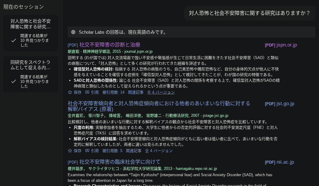 日本語で質問を入力することはできますが、AI による解説部分は英語で出力される仕様となっています(抽出される論文には日本語も含まれます)。