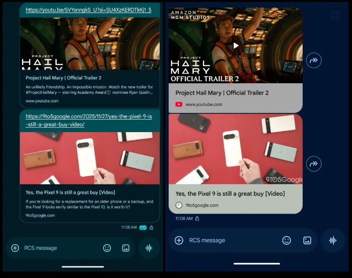 Google メッセージ、リンクと YouTube プレビューの新デザインをベータ版で展開開始