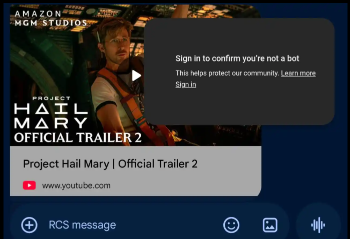 さらに、プレーヤー内に「Sign in to confirm you’re not a bot(ボットでないことを確認するためにログインしてください)」と表示されるにもかかわらず、その画面からログインする手段が存在しない不具合も報告されています。現状では回避策がなく、Google の修正待ちです。