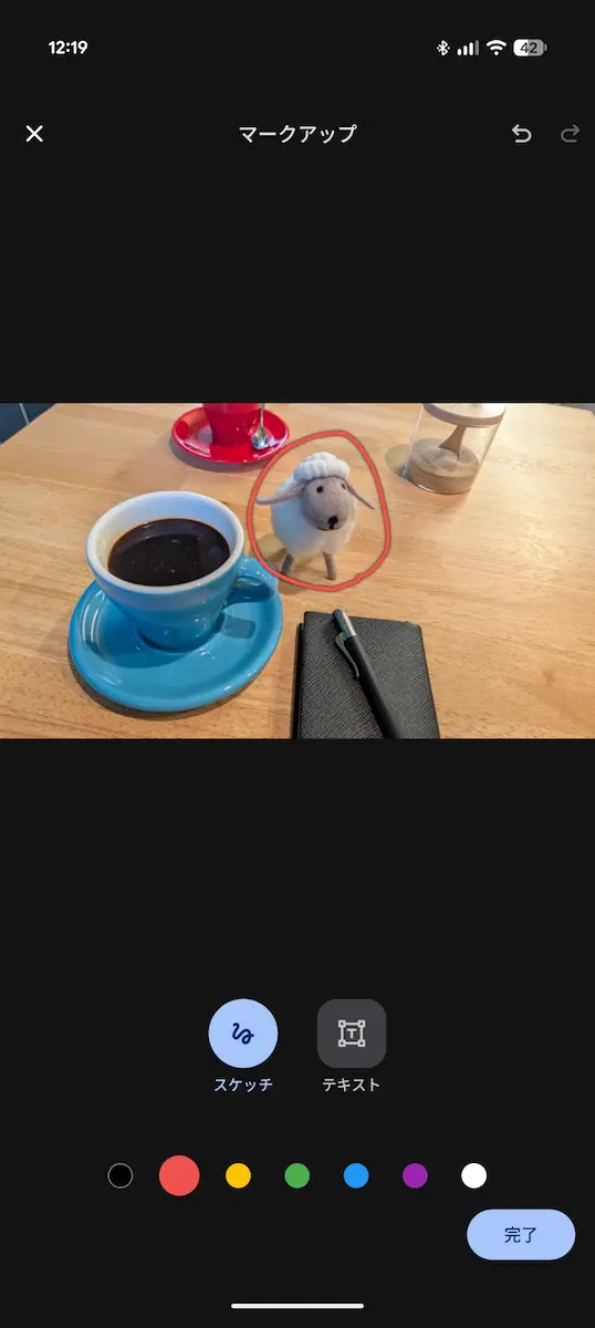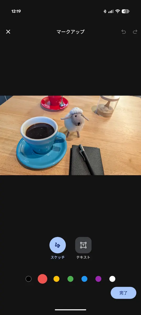 しかし、今回のアップデートにより、Gemini に画像を添付してサムネイルをタップすると、マークアップツールが起動します。