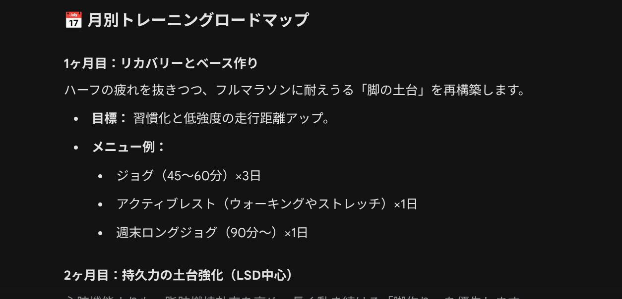 Gemini は、ユーザーの現状とゴール、そして制約条件を与えることで、実行可能なロードマップを作成してくれます。