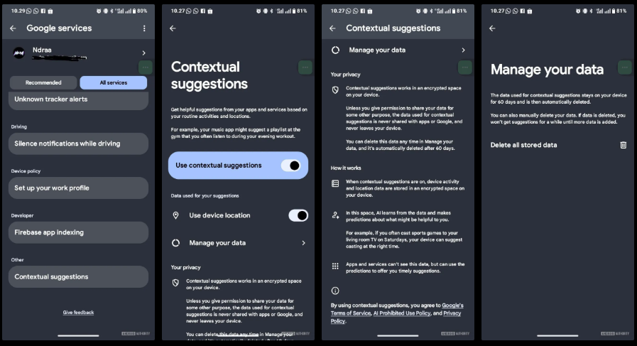 この機能はユーザーの位置情報や行動履歴を利用することになりますが、Google はこの点について、すべてのデータ処理をデバイス上の暗号化された領域(private compute core 等のローカル環境)で行うとしています。