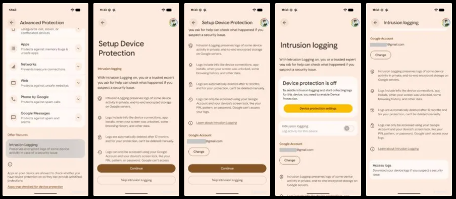 Google が開発中とされる Android 向けのセキュリティ機能「Intrusion Logging(以前は Intrusion Detection とも)」について、インターフェースと挙動の詳細が明らかになりました。
