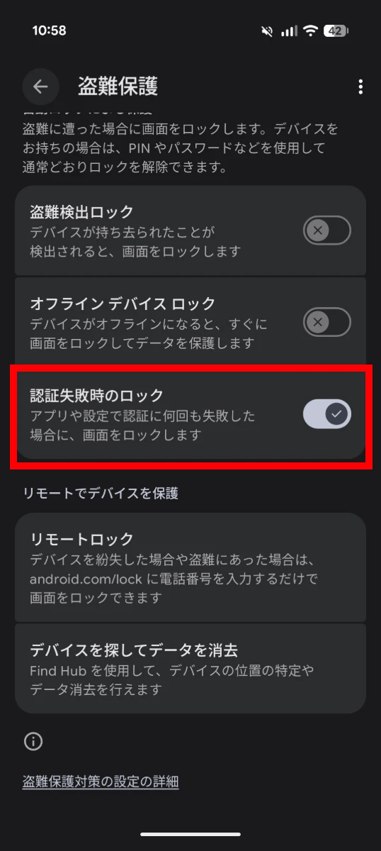 Android 15 では、認証試行が過度に失敗した場合に自動的に画面をロックする「認証失敗時のロック」機能が導入されました。