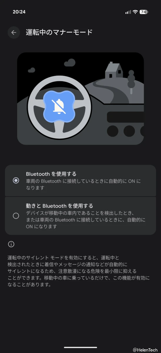 Google は Android スマートフォン向けに提供している「モード」機能のうち、「運転中のマナーモード」について、意図せず自動的に起動してしまう問題を修正し、新たに車両の Bluetooth に接続しているときに自動的にオンになる設定を追加しました。