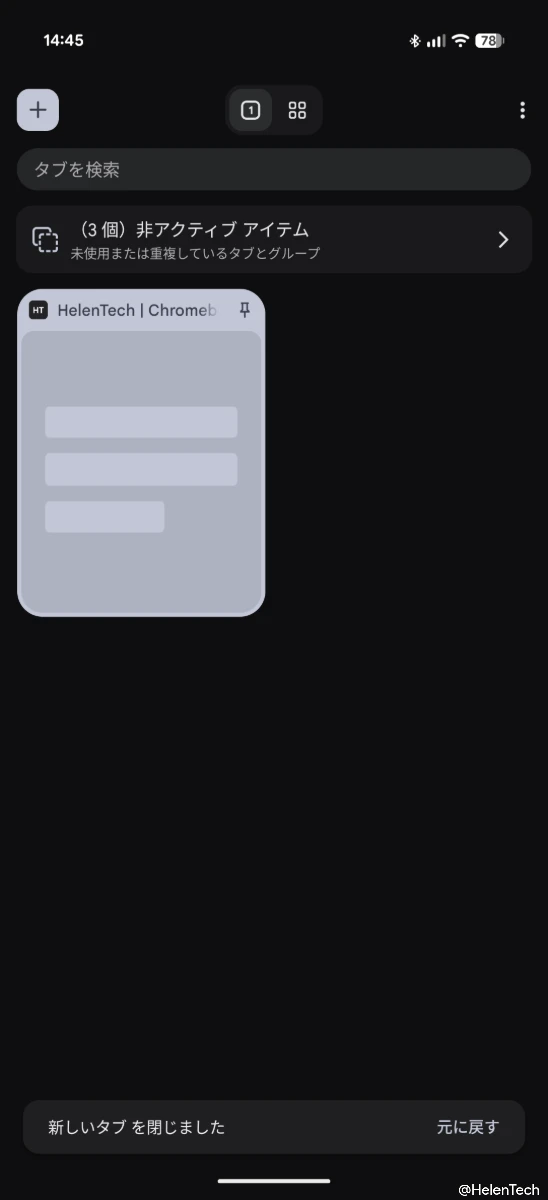• 「×」ボタンの廃止:通常のタブにある「閉じる(×)」ボタンが「ピン」アイコンに置き換わります。これにより、タップミスで閉じてしまう事故を防げます。