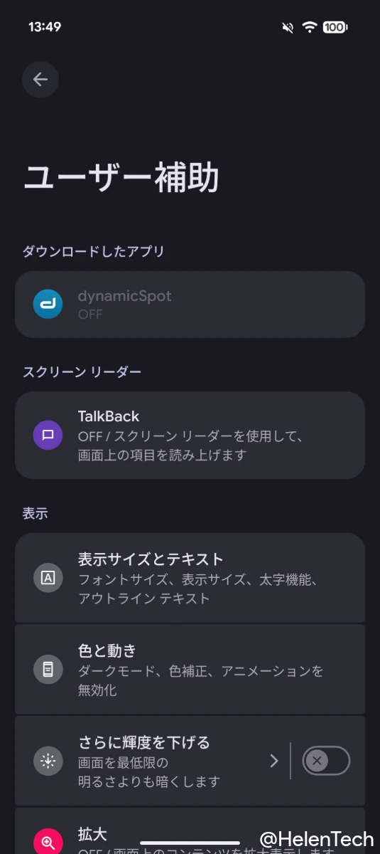 Android の「ユーザー補助」機能は、本来は視覚や身体に障がいを持つユーザーがデバイスを操作しやすくするための機能です。