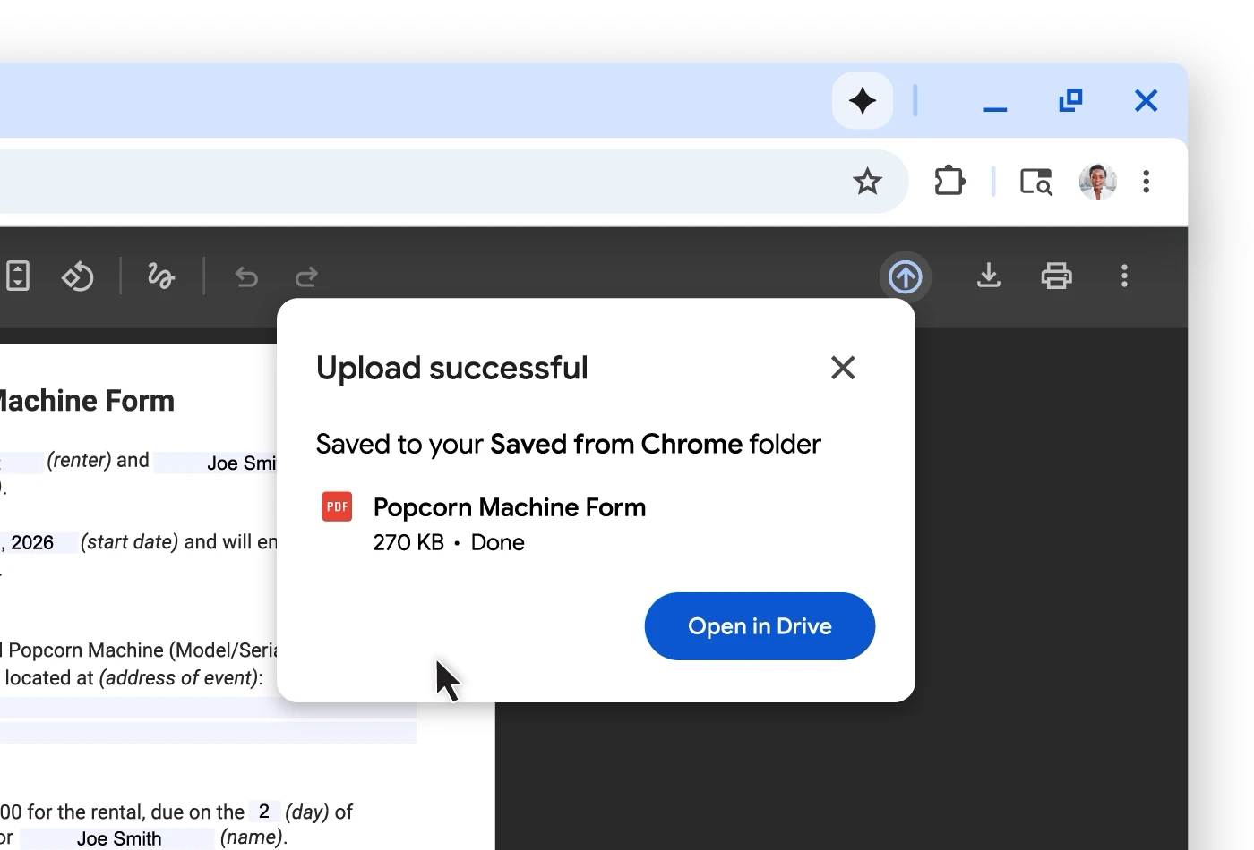2 つ目は、PDF ファイルをダウンロードせずに直接保存できる「Google ドライブへの保存」機能が改善され、直接 PDF を保存できるようになり、ファイルの場所も分かりやすくなりました。