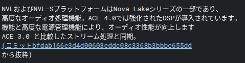 今回、Chromium Gerrit において、Nova Lake を指す「NVL」の記述と、新しいオーディオ・アーキテクチャへの対応を示すコードを確認しました。