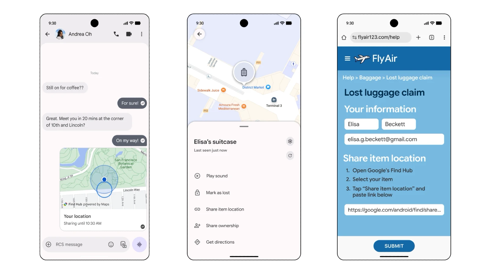 Find Hub で紛失した荷物の位置を航空会社と共有