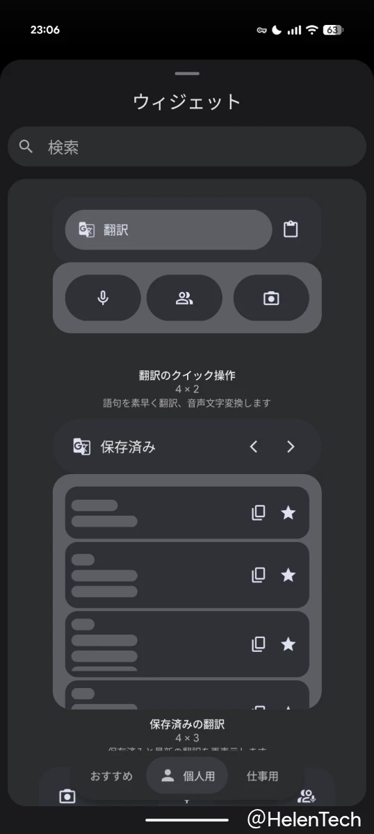 今回のアップデートにより、特定の翻訳機能へホーム画面から直接アクセスできるタイル型のウィジェットなどが追加されています。