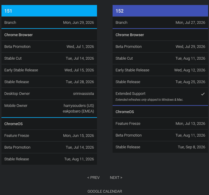 Chrome 153 は、2026 年 9 月 8 日にリリースが予定されています。