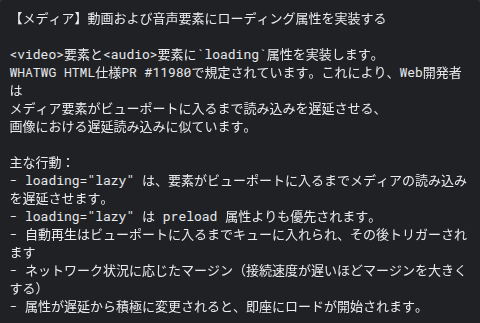 4月中旬のリリースが予定されている Chrome 148 での動画・音声要素の遅延読み込み(Lazy Loading)対応は、Web ブラウジングのパフォーマンスの改善が期待されます。