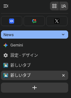 この機能を使うことで、開いているタブが 2 桁に増えてもページタイトル全体を読むことができ、タブグループの整理もより簡単になります。また、垂直タブの列を最小化してファビコンだけの列にすることも可能です。