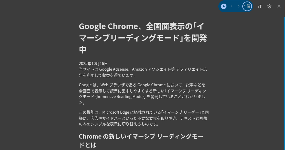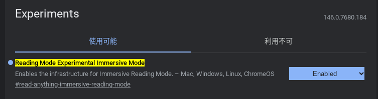 こちらもフラグ (#read-anything-immersive-reading-mode) を有効にすることで、展開されていない場合や Chromebook でも利用可能です。