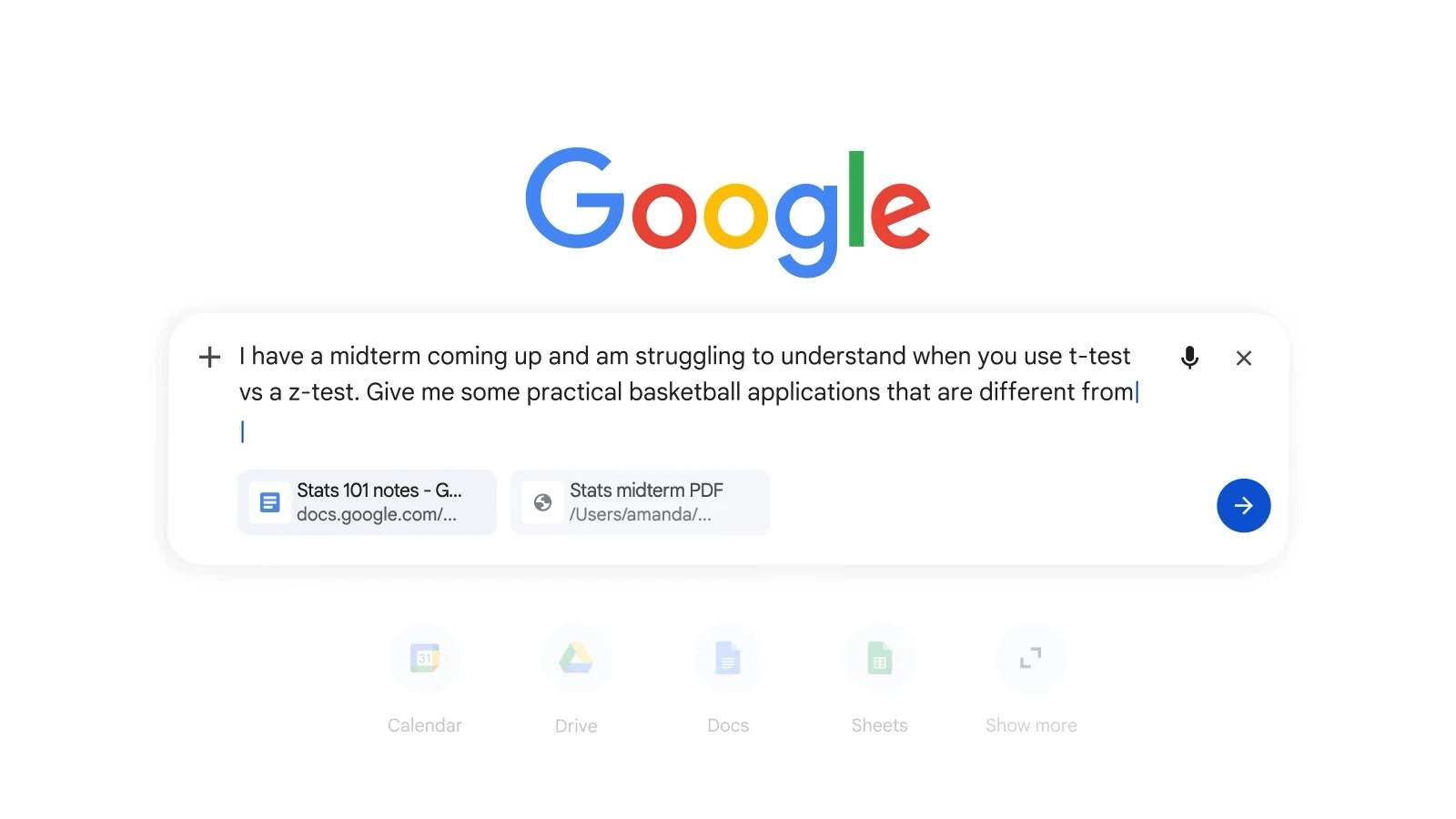 新しいタブページの検索ボックスや AI モード 内の [ + ] メニューから、現在開いている Chrome のタブを選択して検索に含め、複数のタブや画像、PDF などのファイルを組み合わせて入力することも可能です。