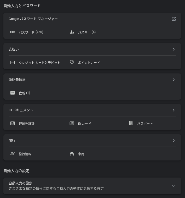 - [自動入力とパスワード] > [住所やその他の情報] に移動