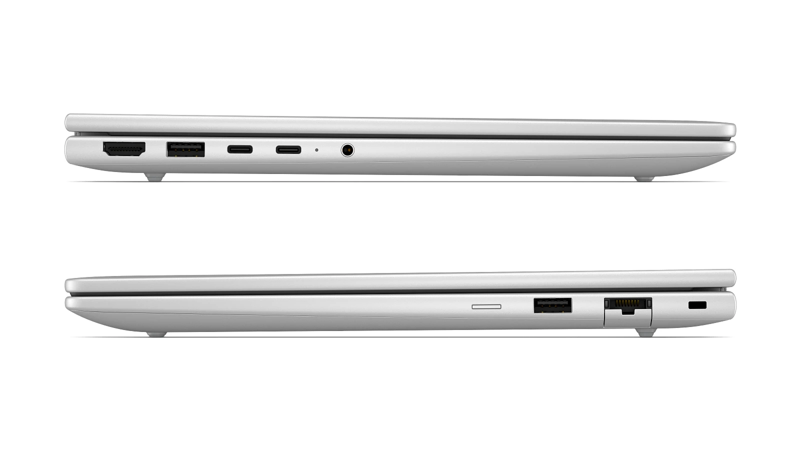 ポートには 2 つの USB-C と USB-A があり、HDMI ポートに加えて Ethernet (RJ45) ポートを搭載しています。指紋センサも備え、Web カメラはプライバシーシャッター付きの 1080p または 5MP を選択可能です。