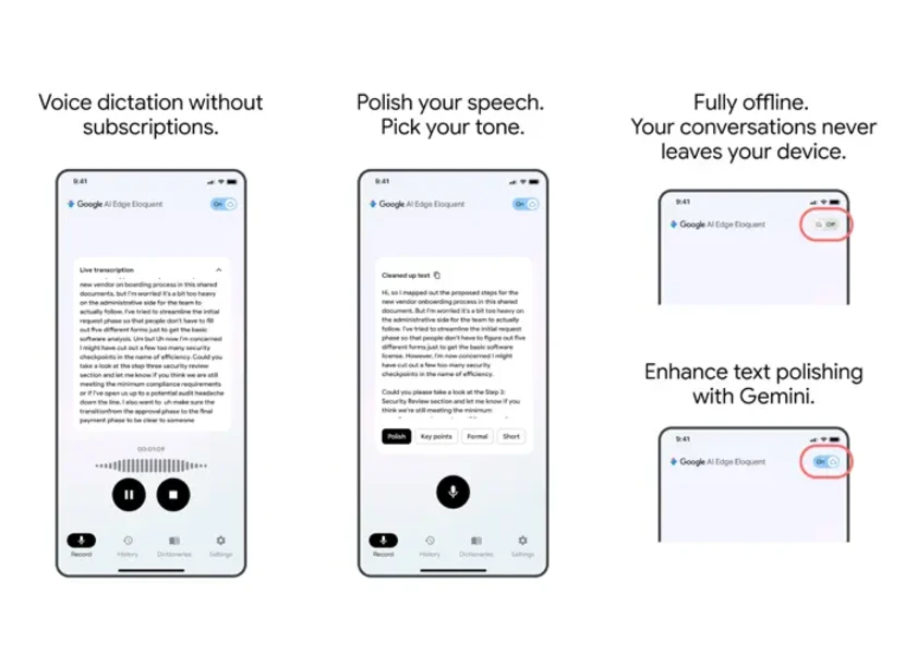 Google AI Edge Eloquent アプリは、ユーザーが話した内容をリアルタイムでテキスト化するだけでなく、AI が文脈を理解して「自然で整った文章」へ自動的に整形することができます。