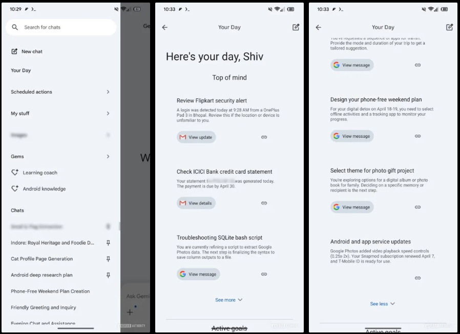 Android Authority が実際に Your Day を有効化したところ、Gemini アプリのナビゲーションドロワー(サイドバー)から起動できることがわかりました。