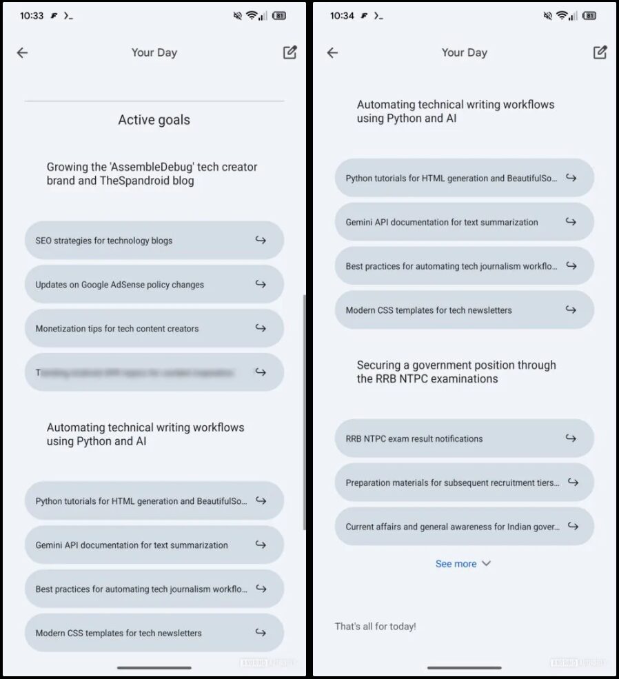 現時点で Your Day は開発中の機能であり、一般の Android ユーザー向けには展開されていません。しかし、すでにインターフェースが動作していることから、開発は最終段階に近づいていると見られます