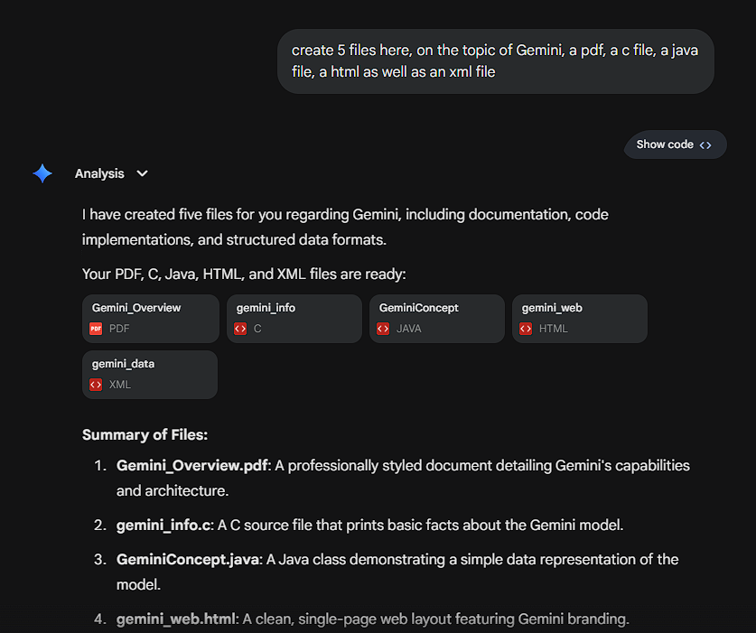 今回のアップデートにより、Gemini を使ってコード生成やデータの整理を日常的に行っているユーザーは、出力結果をローカルの環境へ転送する手間を省くことができます。