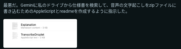 Reddit の報告によれば、Google ドライブを検索し、特定のスクリプトを作成して ZIP フォルダに出力させるといった使い方も確認されています。