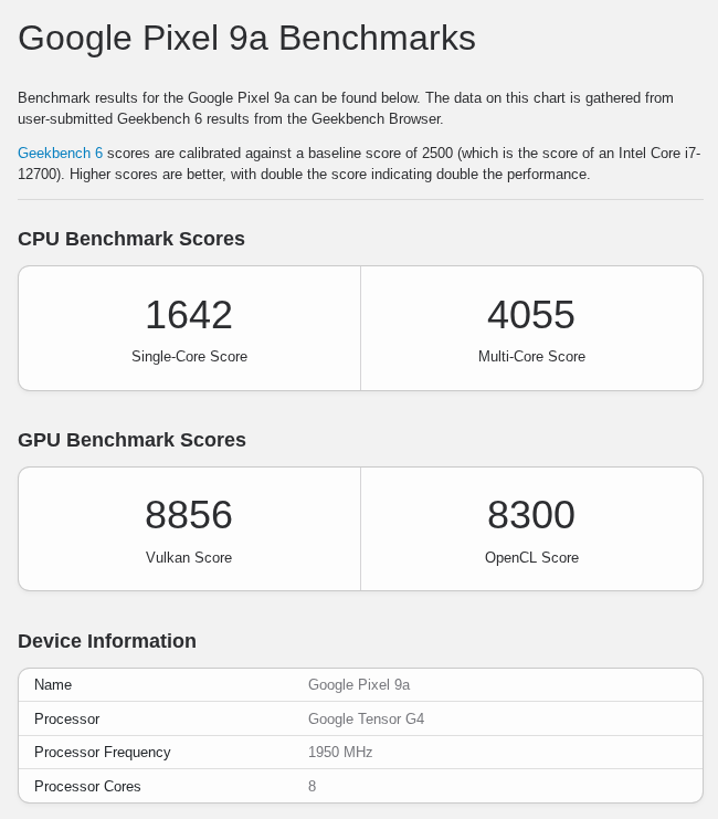 最新プロセッサの搭載は見送られましたが、約 500 ドルという価格帯のスマートフォンとしては十分な処理能力を持っています。Pixel 9a と同様に日常的なタスクやブラウジングでストレスを感じることはないと考えられます。