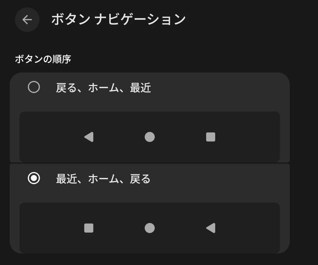 これにより、デフォルトの「戻るボタンが左」の配置だけでなく、多くのメーカーが採用している「戻るボタンが右」の配置を選択できるようになります。